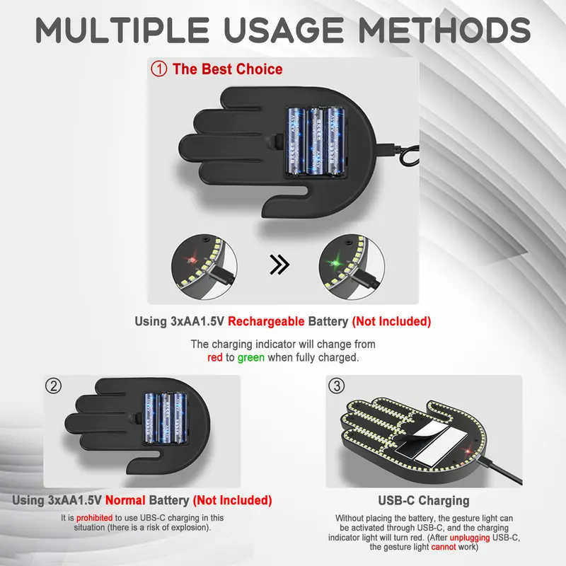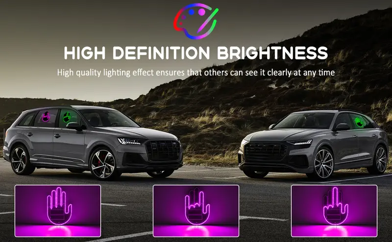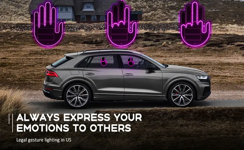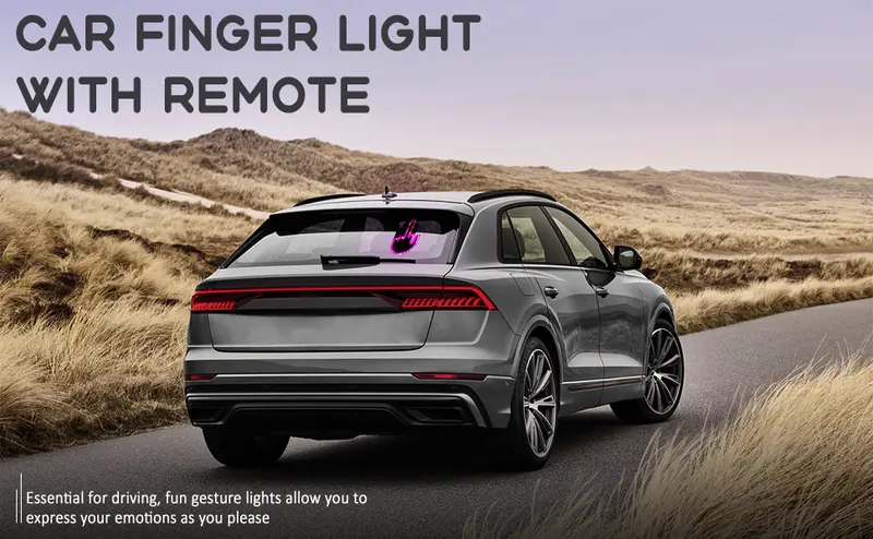 Hand Gesture Lights for Car, Rechargeable Battery USB Finger Car Light with Remote, 3 Gesture-Love&Bird&Wave, Back Window Gesture Lighting for Man Women Fun Car Truck Accessories,Pink