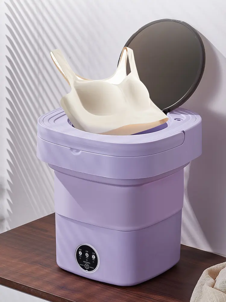 This small portable washing machine has a clever folding design and measures 12.5x12.5x13.5 inches when unfolded and 12.5x12.5x6 inches when folded. Easy to store, it can be easily placed between shelves or under the bed without taking up too much space in your home.