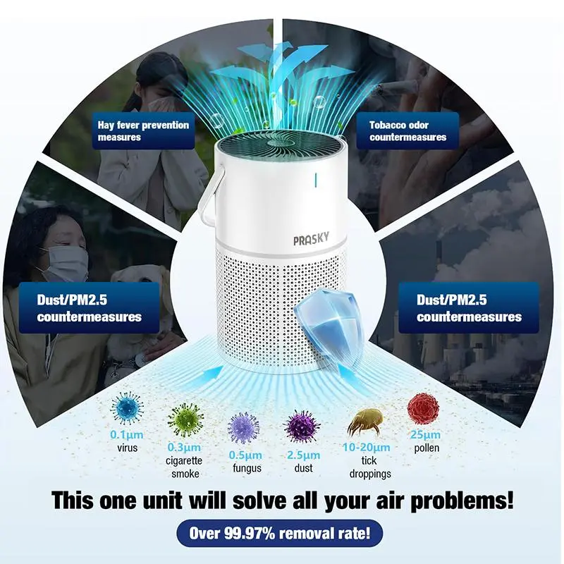 - 【Efficient Particle Filtration】: The air purifier utilizes a HEPA filter that can effectively filter out particles such as smoke, pollen, dander, hair, and more, potentially improving air quality and promoting better health and well-being for you.