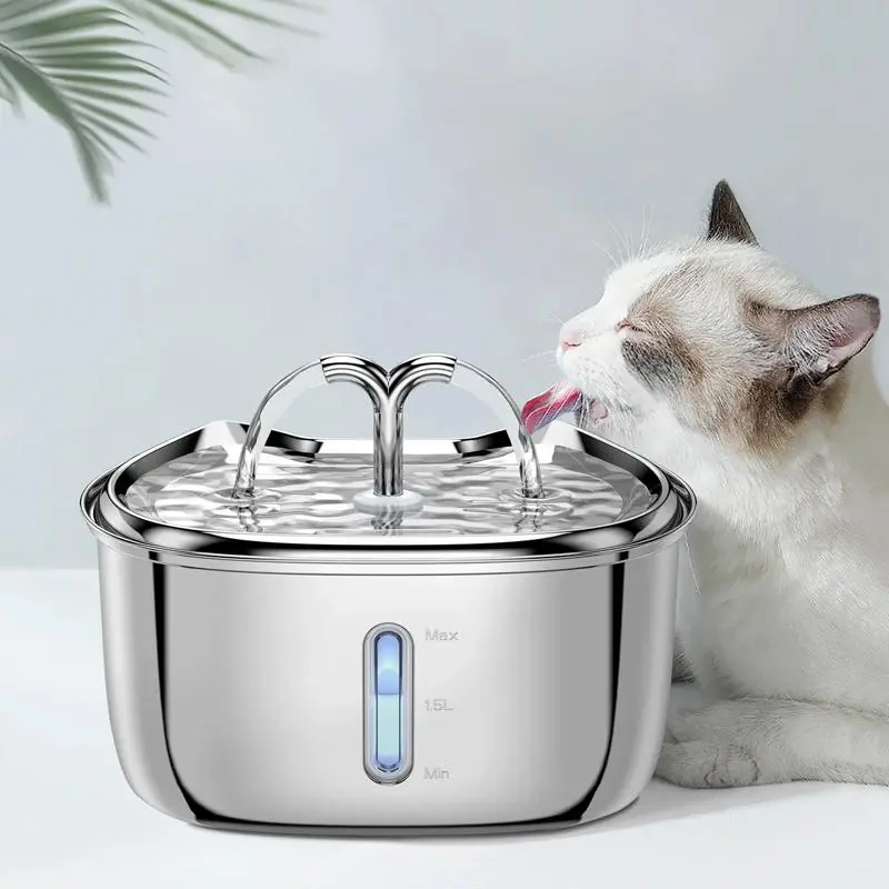 Stainless Steel Dual Outlet Pet Water Fountain, Cat Fountain, Pet Water Dispenser, Large Capacity Pet Drinking Bowl for Cats and Dogs, Pet Drinking Water Machine, Summer Essentials for Kitten
