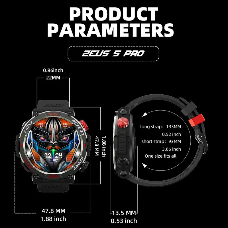 【Adjustable Comfort】: With a short strap of 133mm and a long strap of 115mm, the smartwatch ensures a perfect fit for various wrist size, providing comfort and security for all users.